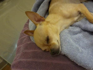 Thoughts and prayers to little angel here who crossed the rainbow bridge this morning, July 9. She must have gotten into some rancid meat outside as she had severe bleeding out of the intestines that onset VERY quickly, just at 6pm last night. In right at 8am this morning, the vet could not get an IV in for fluids nor get her temperature up (it was at 95, when a dog’s normal temperature is 101-102.It’s thought to be salmonella/botchalism (parvo test came back negative so did the test for food poisoning). It all happened so quickly that the owner, of course, is having a very hard time dealing with this… please keep Kim as well as Angel in your prayers. This is a grave way to remind everyone to please keep your dogs inside or contained at all times in a fence if possible – dangers abound all around for our little creatures.