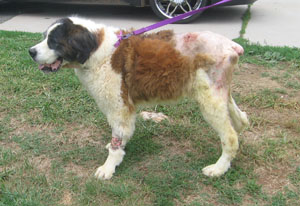Annabelle is a case that we helped through our discretionary funding as this didn’t meet our “companion” criteria, but we just had to help this poor St. Bernard! She was left to die on a chain outside and had chewed off her own tail, was covered in maggots and fleas. Her poor companion dog did not make it. A neighbor pleaded the owner to give Annabelle over to her. She raised all of the funding for Annabelle’s tail amputation and surgery costs herself. The Sergei Foundation helped with follow up care and medicine for this survivor of a girl! So happy she has a second change at life. At 8-years old, she deserves to know what real love is, regardless how long she may have it for.