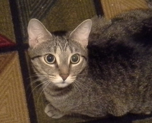Meet young Ruckus. This 2-year-old had a urinary blockage. Treatment is needed quickly for this issue as death can occur in as little as 12 hours sometimes! His mommy took him to an ER vet and they drained the bladder for immediate relief. We helped Ruckus get vet care the next day where he had a catheter and a hospital stay for five days. Hopefully with medicine and a change in food/diet, Ruckus will be able to sustain good pH balance so the stones do not reoccur, or more major surgery could be needed.