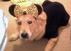This is Star’s memorial picture. She is the one who, after further diagnostics/exam, was unfortunately diagnosed with advanced cancer (tumor in the abdomen). This is her in her glory days of playing dress up – courtesy of her human sister. After spending the weekend with her family and saying their goodbyes, Star crossed the rainbow bridge today to be in peace and pain-free. Thoughts and prayers to the family.